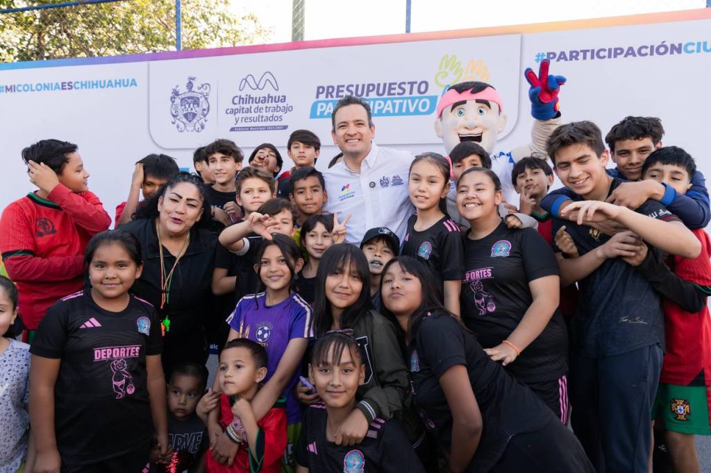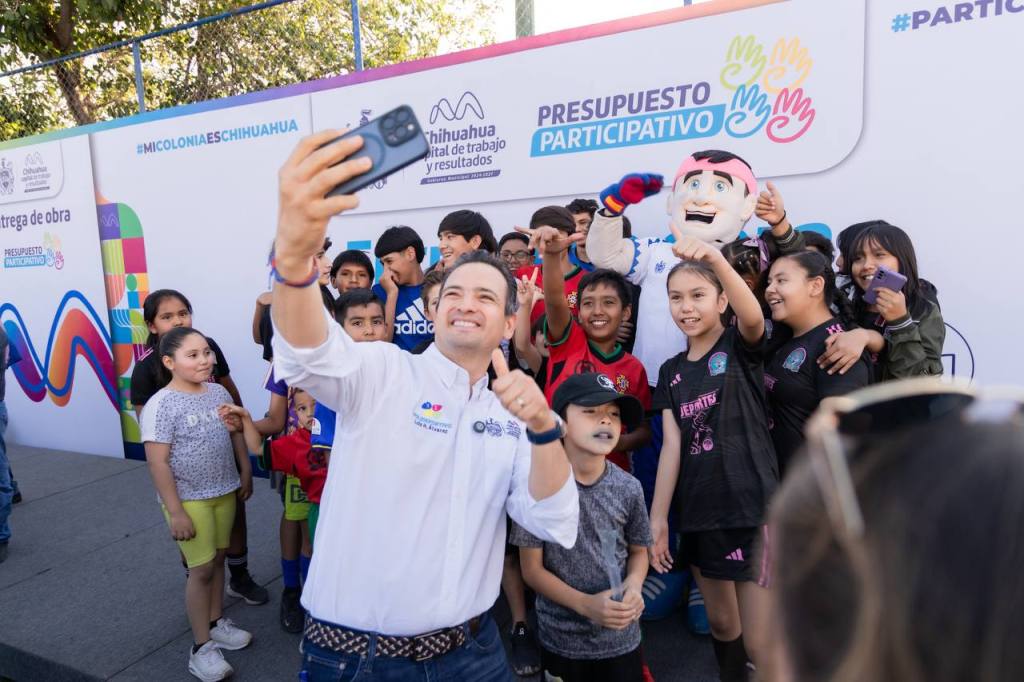 📍Chihuahua, Chih. — 22 de abril de 2025 — El alcalde Marco Bonilla entregó oficialmente el parque y canchas totalmente remodeladas de la colonia Rubio, proyecto posible gracias al voto de las y los vecinos en la consulta del Presupuesto Participativo.
