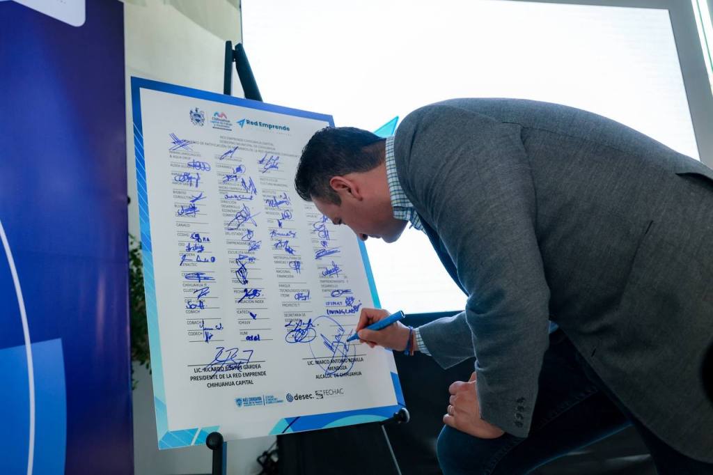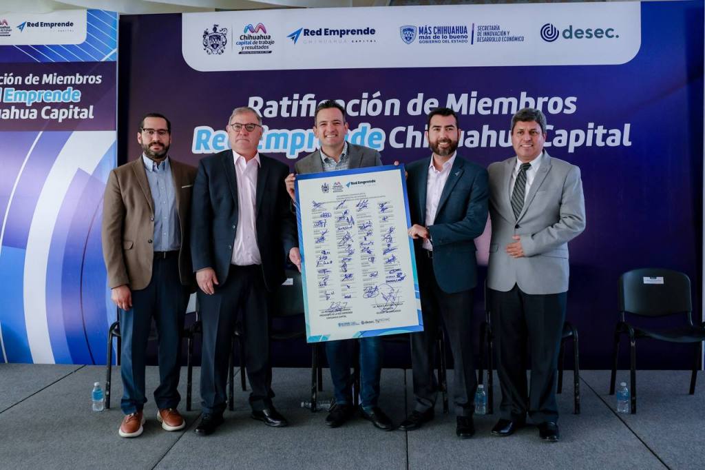 📍H. Ciudad de Chihuahua, Chih., a 28 de abril de 2025 — Con el objetivo de fortalecer el ecosistema de emprendimiento, el alcalde Marco Bonilla encabezó la firma de ratificación de la alianza estratégica con Red Emprende Chihuahua, una red que reúne a más de 60 instituciones públicas, privadas, académicas y sociales.