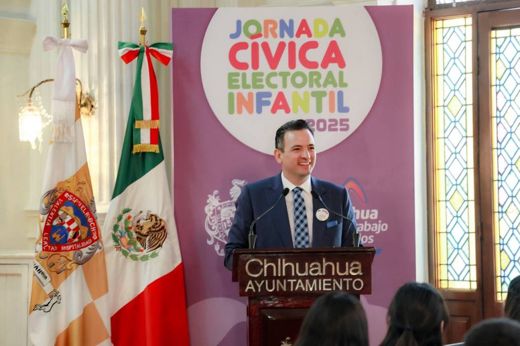 👏 Como parte del acto, Carlos Manuel Leyva Villegas fue nombrado presidente municipal infantil, mientras que Mirjana Anchondo Cadena asumió como síndica y Alisson Espinoza Villagrán como secretaria del H. Ayuntamiento.