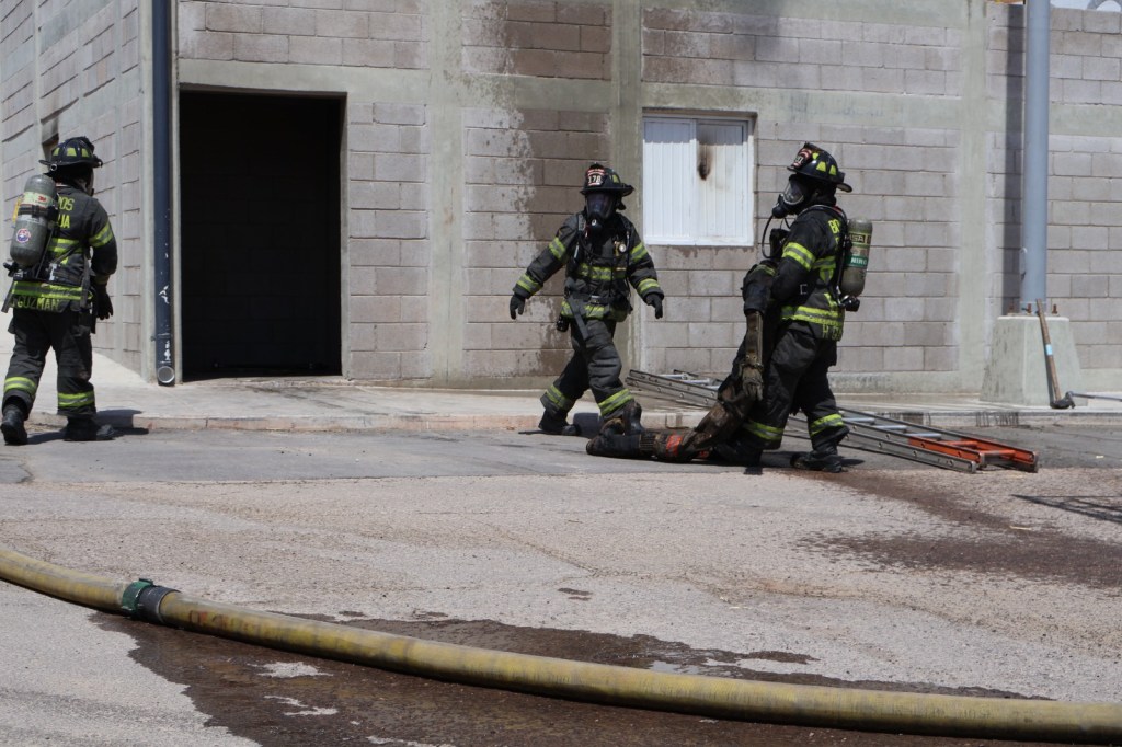 📍H. Ciudad de Chihuahua, Chih., a 29 de abril de 2025 — Para mejorar los protocolos de actuación en incendios en edificios de dos niveles o más, el Heroico Cuerpo de Bomberos realizó un mega simulacro en las nuevas instalaciones del Instituto Superior de Seguridad Chihuahua (ISSCUU).
