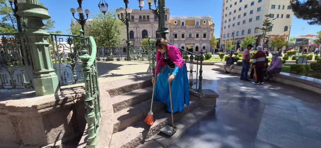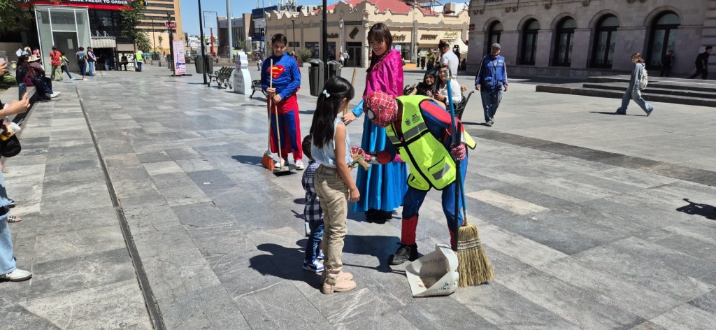 Como parte de los festejos por el Día de la Niñez, personal de la Dirección de Mantenimiento Urbano del Gobierno Municipal de Chihuahua realizó una jornada de limpieza muy especial: vestidos de superhéroes, princesas y personajes animados, barrieron y embellecieron la Plaza de Armas, compartiendo momentos llenos de color y sonrisas con niñas, niños y sus familias 👧🧑🎈