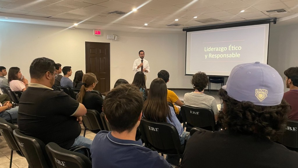 La ponencia fue impartida por el director de la Facultad de Ciencias Políticas y Sociales de la UACH, Mario Duarte Bustillos, quien abordó la necesidad de formar liderazgos jóvenes con ética, responsabilidad social y visión de futuro.