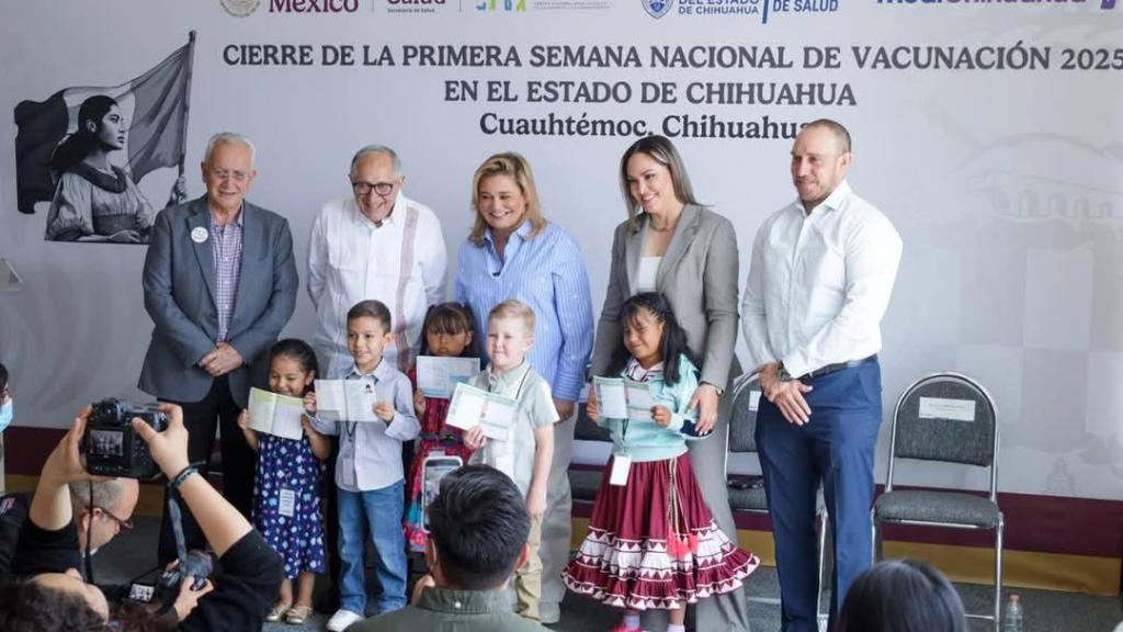 Durante el acto de cierre de la Primera Semana Nacional de Vacunación 2025, realizado en el Hospital Dr. Javier Ramírez Topete de Cuauhtémoc, la diputada Yesenia Reyes, presidenta de la Comisión de Salud del Congreso del Estado, reconoció el trabajo del Gobierno de Chihuahua ante el brote de sarampión.