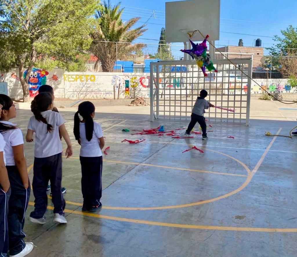 Con motivo del Día de la Niñez, la diputada local del Partido Acción Nacional (PAN), Carla Rivas, visitó la escuela primaria Oscar Soto Máynez, ubicada en la colonia Cerro de la Cruz, para llevar piñatas, regalos y un momento de alegría a las niñas y niños del plantel.