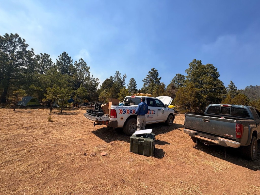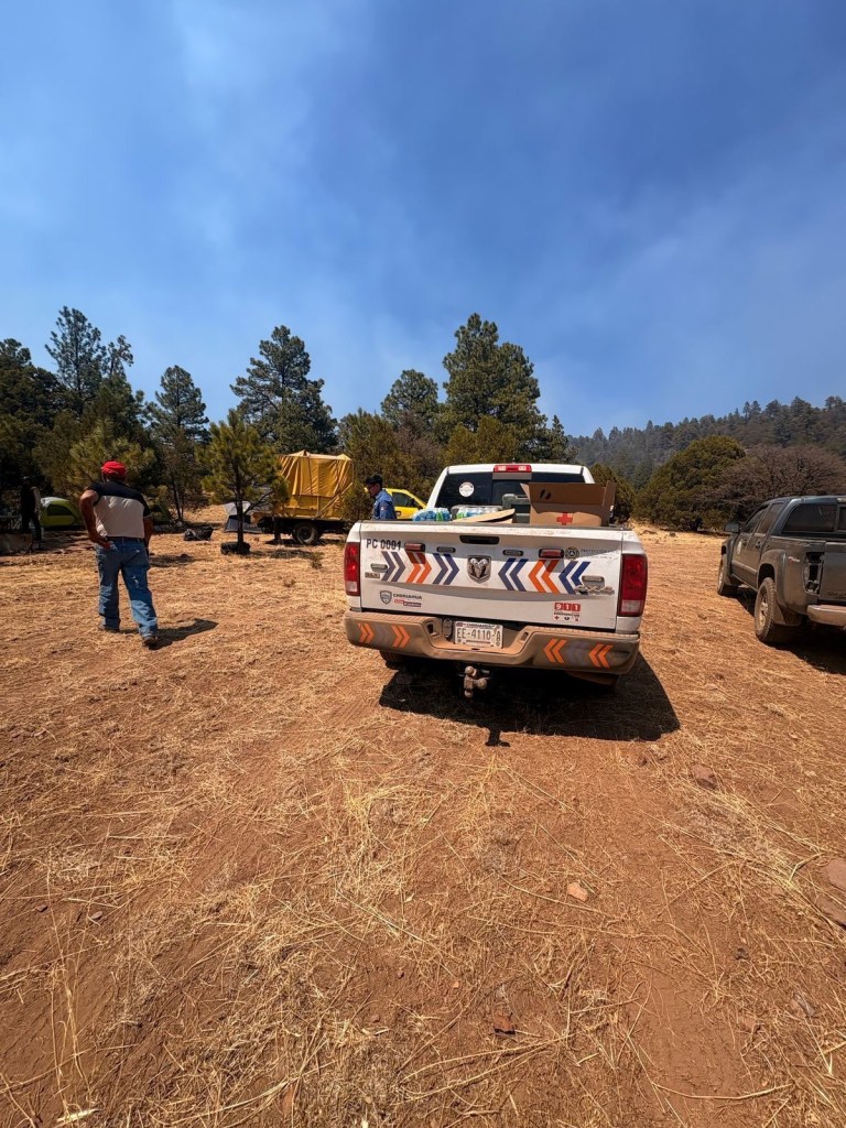La Coordinación Estatal de Protección Civil (CEPC) llevó equipo de comunicación satelital e insumos esenciales a brigadistas que combaten los incendios forestales en el municipio de Madera, particularmente en los ejidos El Largo Maderal y Pomonas.