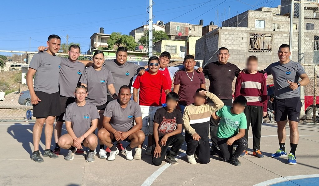 Con el objetivo de fortalecer la confianza entre jóvenes y autoridades, elementos de la Policía Municipal, a través del grupo canino K9, participaron en una “cascarita” amistosa con adolescentes de la colonia Lealtad II, como parte de las acciones de proximidad social.