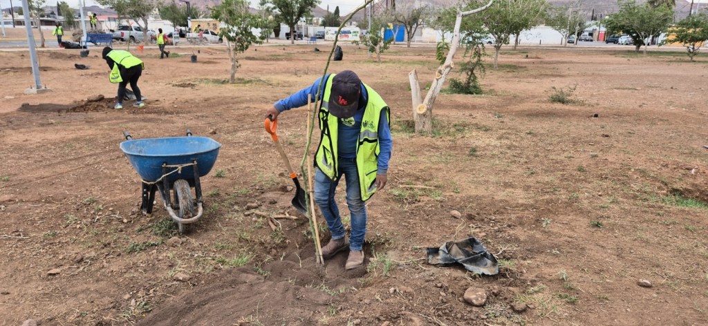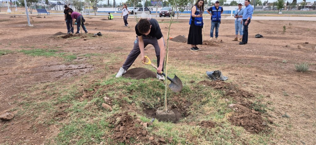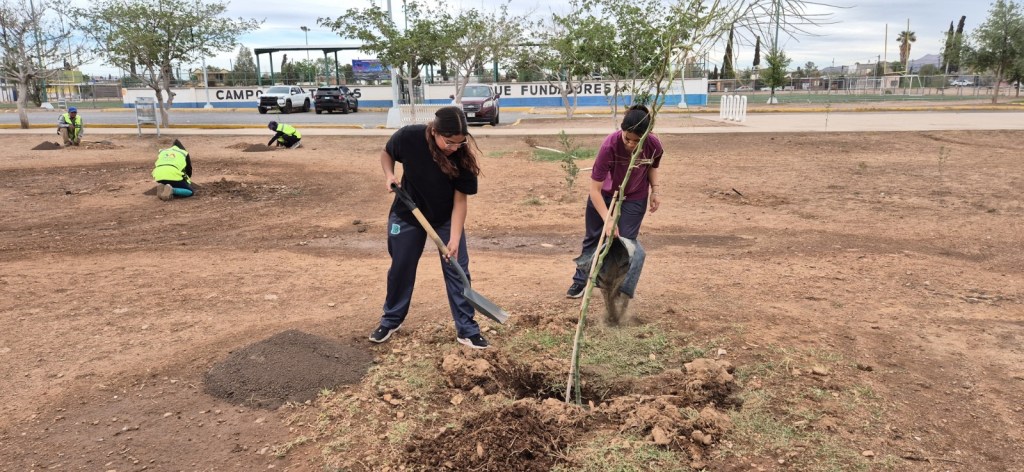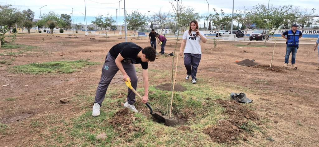 Chihuahua, Chih.– En un esfuerzo conjunto por fortalecer las áreas verdes de la ciudad, el Gobierno Municipal, a través de la Dirección de Mantenimiento Urbano, y estudiantes del Colegio de Bachilleres Plantel 8 (COBACH), llevaron a cabo la reforestación del parque La Huerta Legarreta con la plantación de 35 ejemplares de Palo Verde 🌿.