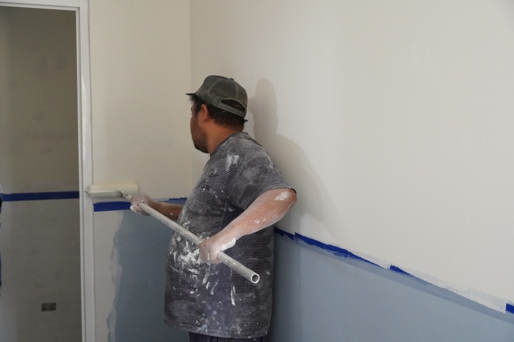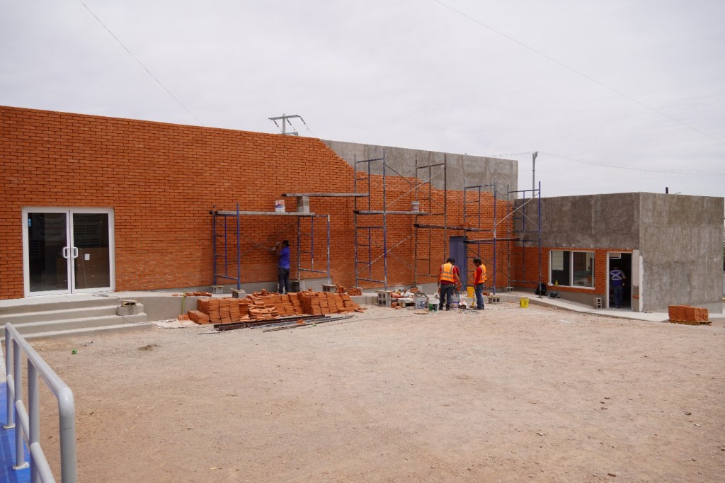 En esta etapa del proyecto se trabaja en la instalación de fachaleta tipo ladrillo, habilitación del cableado eléctrico en todo el edificio, colocación de plafones, puertas de madera, pintura y unidades de climatización.
