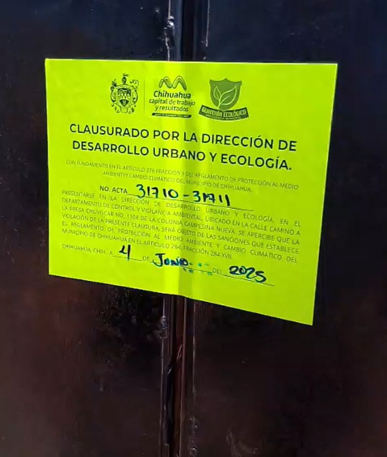 H. Ciudad de Chihuahua, Chih., a 4 de junio de 2025.- Como parte de la investigación que encabezan el Gobierno Municipal y la Fiscalía General del Estado por el caso de los cuatro caninos afectados por chapopote en la colonia Sierra Azul, este martes la Dirección de Desarrollo Urbano y Ecología procedió a clausurar parcialmente el negocio presuntamente responsable del derrame.