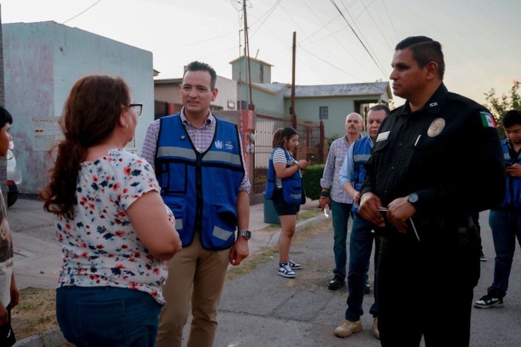 H. Chihuahua, Chih., a 8 de junio de 2025.– El alcalde Marco Bonilla recorrió la colonia Robinson para escuchar de primera mano las necesidades de las y los vecinos en materia de seguridad, y verificar el correcto funcionamiento del nuevo sistema de alumbrado público instalado recientemente.