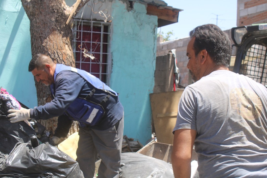 H. Ciudad de Chihuahua, Chih., a 11 de junio de 2025. Con el objetivo de mejorar la imagen urbana y evitar focos de infección, el Gobierno Municipal, a través de la Dirección de Servicios Públicos Municipales, retiró 24 toneladas de basura y tiliches acumulados en una vivienda ubicada en la colonia Niños Héroes, al norte de la ciudad.