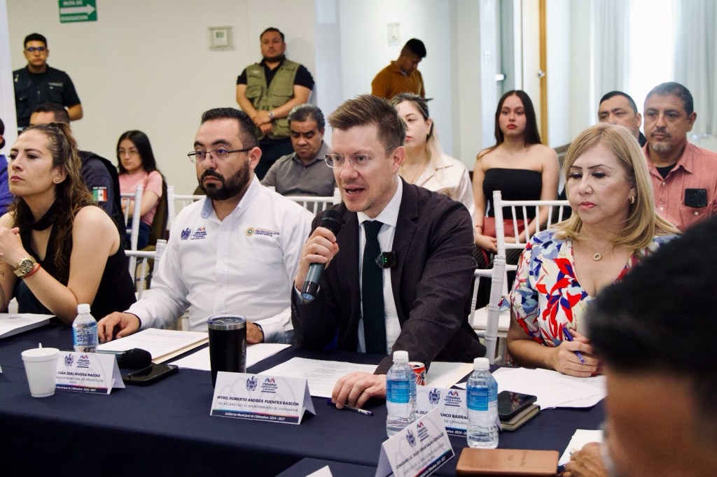 El secretario del Ayuntamiento, Roberto Fuentes, encabezó la sesión y reafirmó que se trabaja de forma permanente en medidas preventivas y correctivas para el bienestar de las y los chihuahuenses.