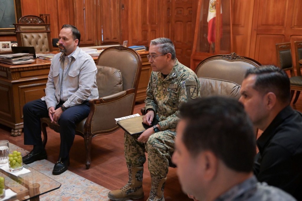 Chihuahua, Chih., a 6 de julio de 2025 – La gobernadora Maru Campos sostuvo una reunión de trabajo en Palacio de Gobierno con el general de División Eufemio Alberto Ibarra Flores, comandante de la XI Región Militar con sede en Torreón, Coahuila.