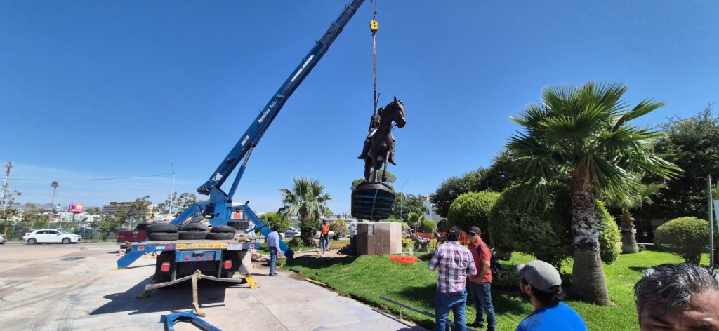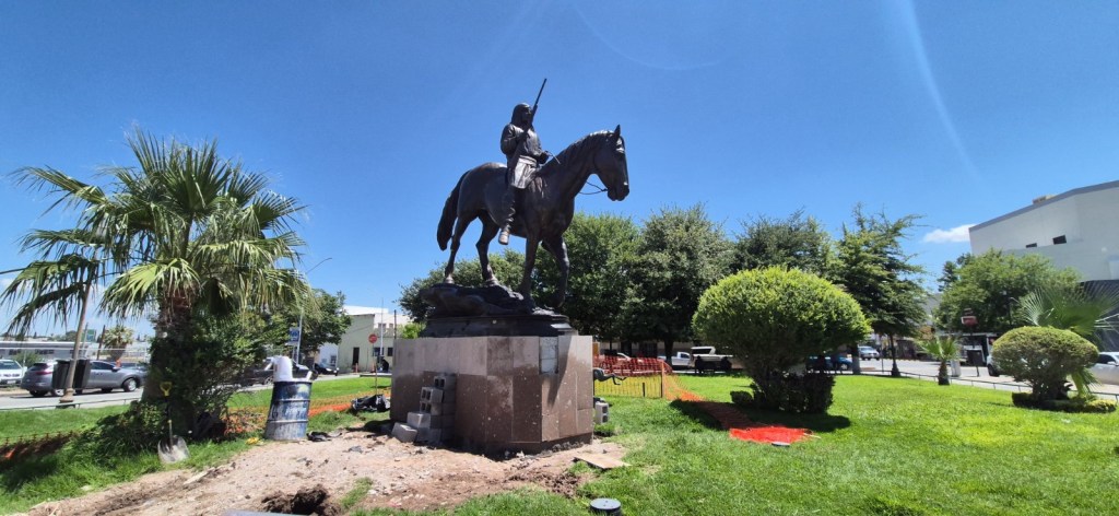 La Dirección de Mantenimiento Urbano finalizó los trabajos de traslado y restauración del monumento, mientras que la Dirección de Obras Públicas se encuentra realizando los acabados en cantera y la instalación eléctrica para la colocación de luminarias, con un avance estimado del 70 por ciento.