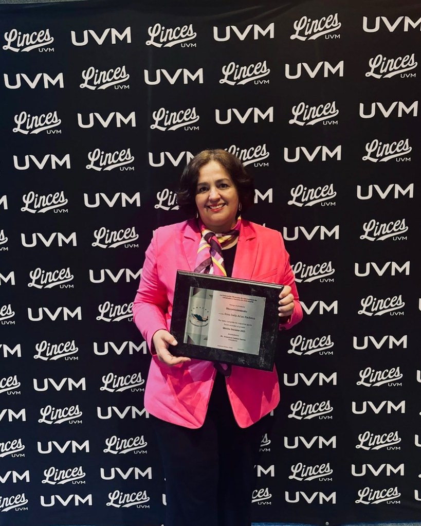 La Dra. Rosa Isela Arias Pacheco, destacada catedrática de la Facultad de Enfermería y Nutriología de la Universidad Autónoma de Chihuahua (UACH), recibió el Premio al Mérito Docente 2025, otorgado por la Federación Mexicana de Asociaciones de Facultades y Escuelas de Enfermería (FEMAFEE).