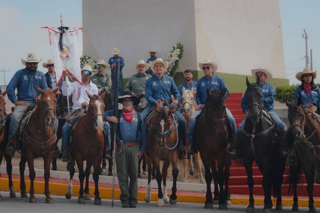 Más de 40 jinetes provenientes de Ciudad Juárez arribaron al Obelisco de Sacramento, donde se colocó una ofrenda floral y se realizó una guardia de honor en memoria del general Francisco Villa y los revolucionarios de la División del Norte que defendieron con valentía la ciudad de Chihuahua.