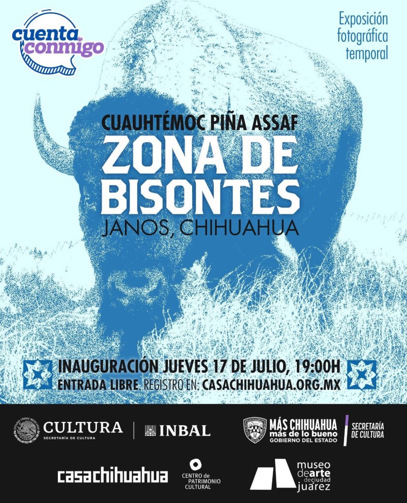 H. Ciudad de Chihuahua, Chih., a 14 de julio de 2025. – El Museo Casa Chihuahua invita cordialmente a la ciudadanía a la inauguración de la exposición fotográfica “Zona de Bisontes. Janos, Chihuahua”, del artista Cuauhtémoc Piña Assaf, que tendrá lugar el próximo miércoles 17 de julio a las 19:00 horas, en el marco del programa Jueves de Puertas Abiertas.