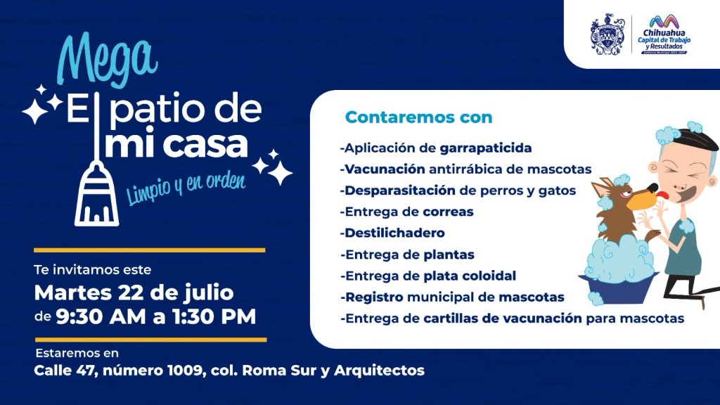 🔔 El Gobierno Municipal hace un llamado a las familias chihuahuenses a mantener sus patios limpios, cuidar a sus mascotas y participar activamente en estas acciones preventivas para combatir la garrapata, vector de la rickettsia.