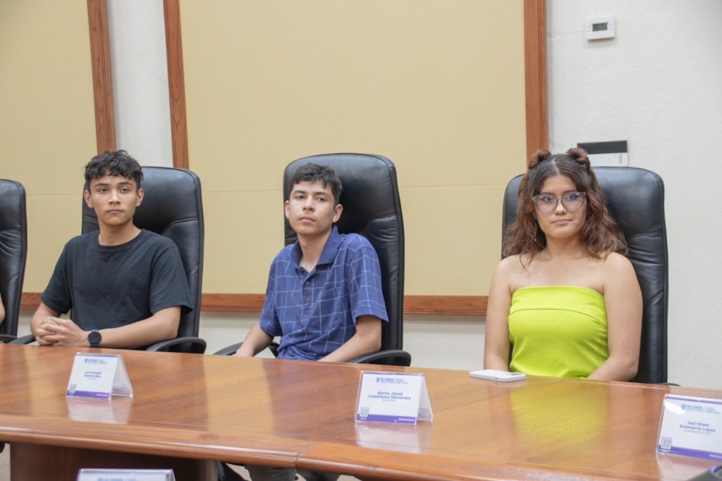 Luis Fernando Quintana Ríos y Gabriel Enrique Ojeada Castillo, del Cecytech. Karina Jaired Castellanos Hernández, del Cbtis 122.