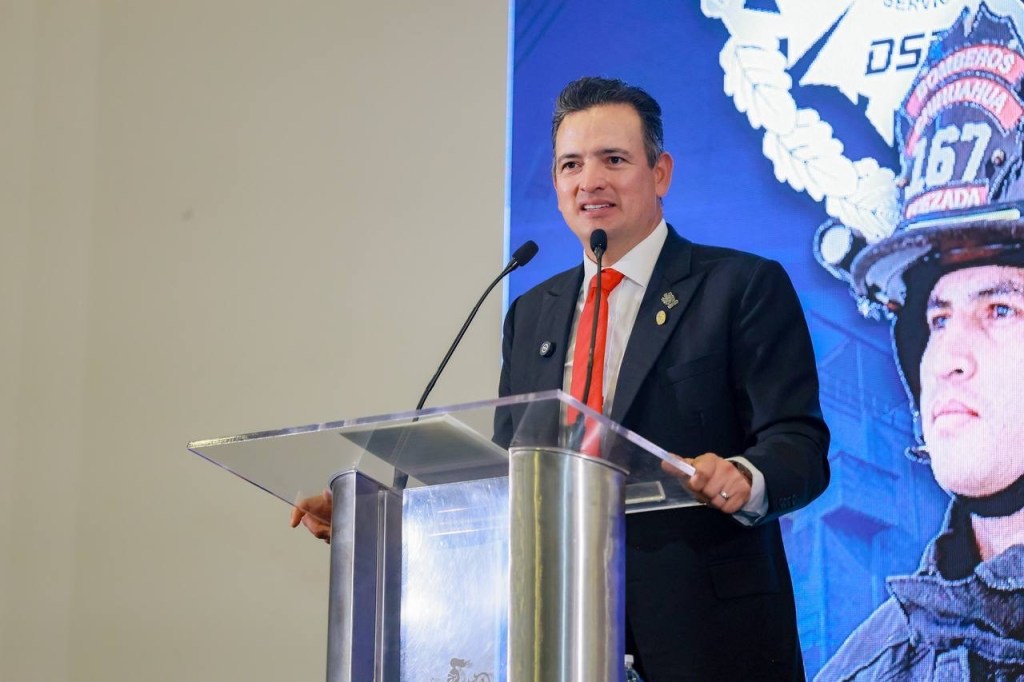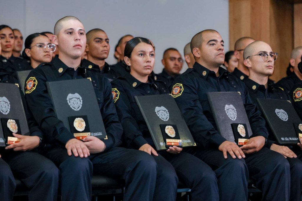 El alcalde Marco Bonilla encabezó la ceremonia de graduación de la segunda generación de cadetes de esta administración, integrada por 102 Policías de Proximidad (66 mujeres y 36 hombres) y 27 bomberos (8 mujeres y 19 hombres), quienes culminaron su preparación en el Instituto Superior de Seguridad Chihuahua (ISSCUU).