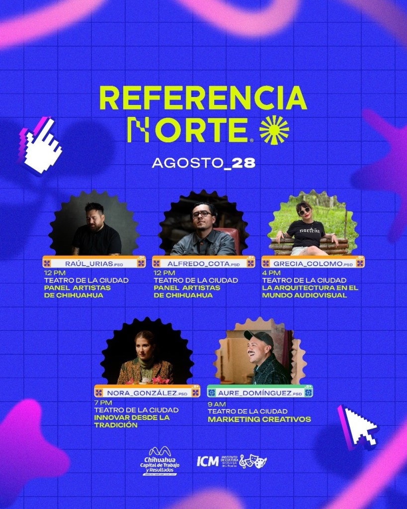 ⏰ 9:00 am – Taller Marketing Creativo – 🎭 Teatro de la Ciudad ⏰ 11:00 am – Laboratorios abiertos (Podcast, Realidad Aumentada, Superficies Interactivas e Ilustradores Locales) – 🛤️ Callejón Morelos ⏰ 12:00 pm – Panel Artistas de Chihuahua con Raúl Urías y Alfredo Cota – 🎭 Teatro de la Ciudad ⏰ 4:00 pm – Conferencia con Grecia Colomo – 🎭 Teatro de la Ciudad ⏰ 7:00 pm – Charla con Nora González – 🎭 Teatro de la Ciudad ⏰ 8:00 pm – Concierto con artistas invitados – 🎶 Callejón Morelos