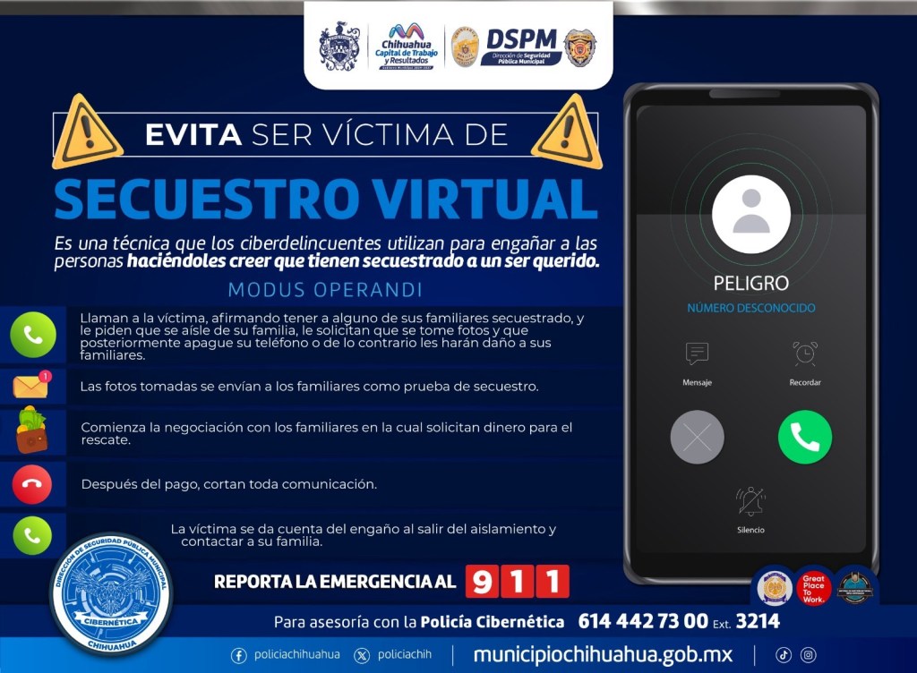Agentes de Inteligencia de la Dirección de Seguridad Pública Municipal (DSPM) frustraron un intento de extorsión cibernética mediante la modalidad de secuestro virtual y localizaron sanos y salvos a un padre y su hija, por quienes delincuentes pedían un rescate de 5 mil dólares.