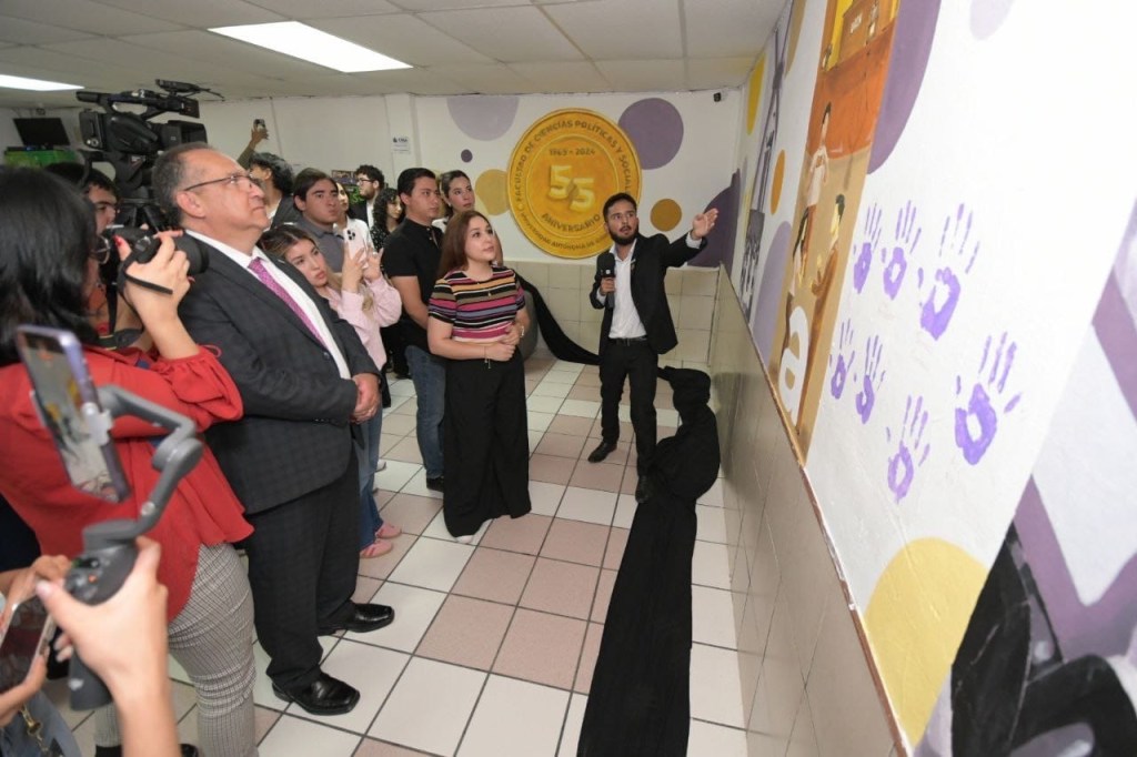 Con el propósito de fortalecer la identidad y orgullo universitario, fue develado el mural “Identidad Viva UACH” en la Facultad de Ciencias Políticas y Sociales (FCPYS) Campus Juárez, creado por el estudiante y artista Nestor Adrián Sosa Pérez.