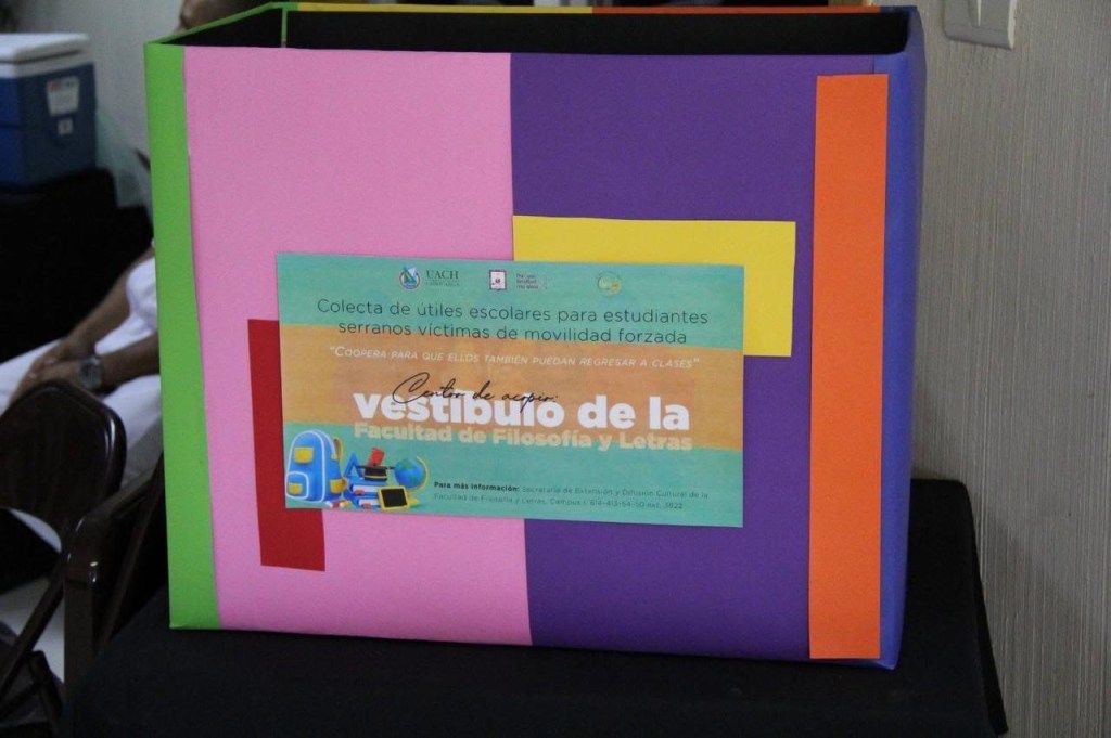 La Facultad de Filosofía y Letras de la UACH, en coordinación con el colectivo “Las 4 raíces”, inició una colecta de útiles escolares para beneficiar a niñas, niños y jóvenes desplazados por la violencia en la región serrana del estado.