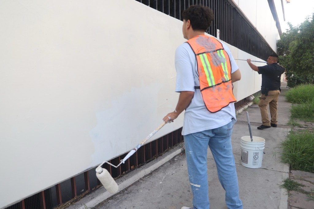 En días recientes, jóvenes infractores participaron en la reparación de bardas en la colonia Centro y en Punta Oriente, bajo la supervisión de agentes municipales que resguardaron su integridad y colaboraron en los trabajos.