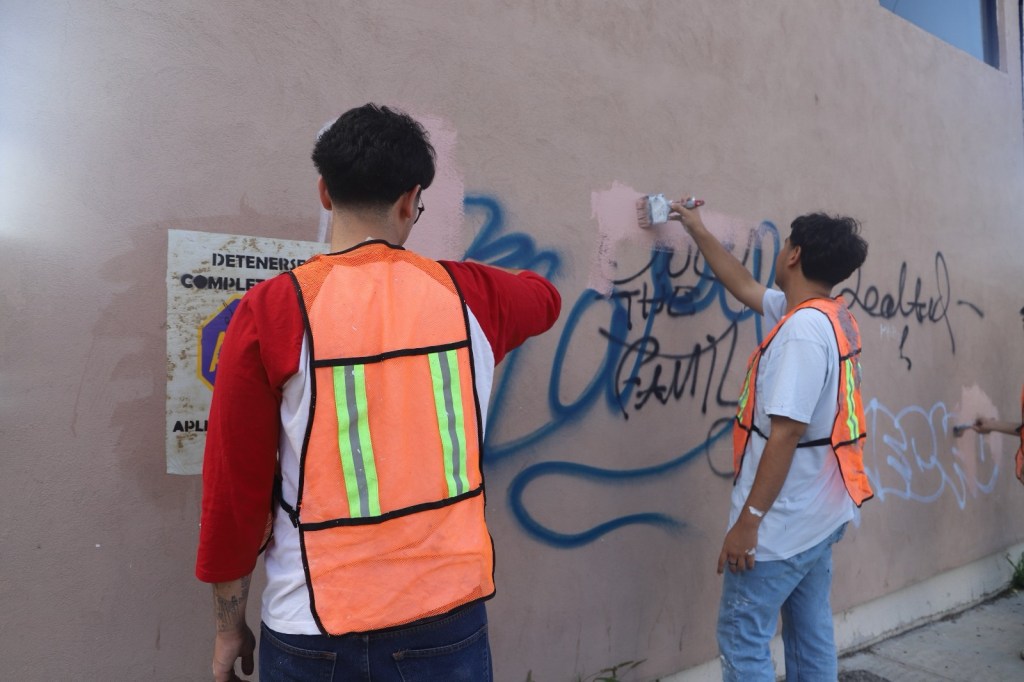 Infractores participan en reparación de bardas y labores comunitarias como parte de su reintegración social