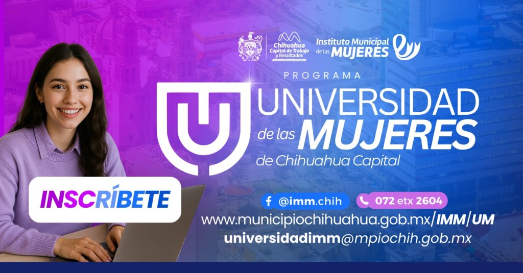 📍 Para ser parte de la Universidad de las Mujeres, acude a las oficinas del IMM en calle Libertad #1, Edificio Libertad, 4º piso, colonia Centro, de lunes a viernes de 8:00 am a 3:00 pm, o consulta 👉 www.municipiochihuahua.gob.mx/IMM/UM.