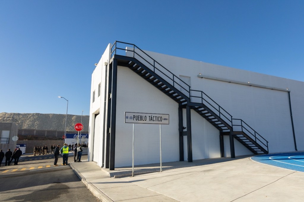 Pueblo Táctico para simulaciones. Plancha de quema para prácticas bomberiles. Trota pista de 400 metros. Pista de manejo de emergencias. Estacionamiento y vialidades internas. Pabellón de tiro virtual con cerca de 100 escenarios simulados.