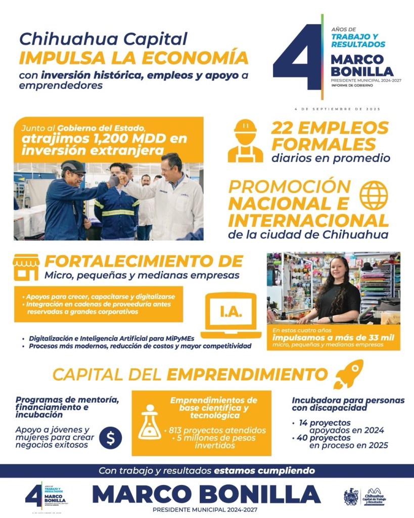 Con estas acciones, el Gobierno Municipal reafirma que en Chihuahua Capital, con trabajo y resultados estamos cumpliendo, demostrando que el crecimiento económico no solo se mide en cifras, sino en oportunidades reales para cada familia.