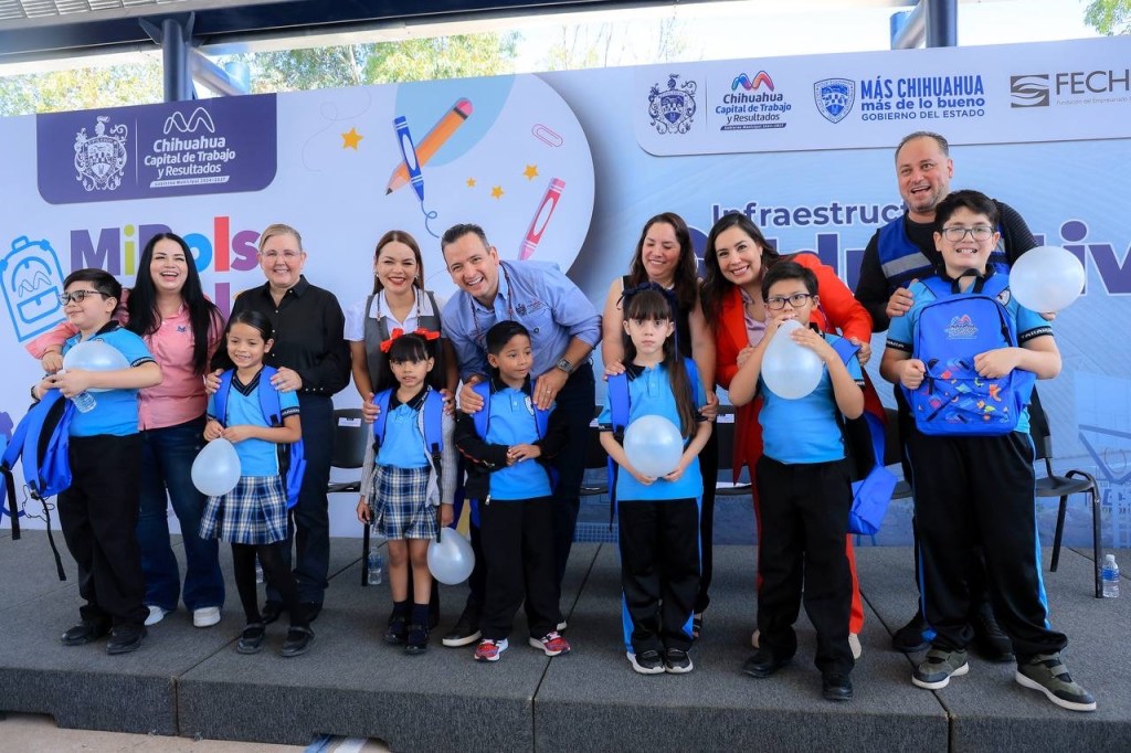 El alcalde Marco Bonilla acudió a la escuela primaria Tarahumara para inaugurar un domo escolar y entregar paquetes de útiles del programa Mi Bolsa Escolar, con el objetivo de mejorar las condiciones de estudio de las y los alumnos.
