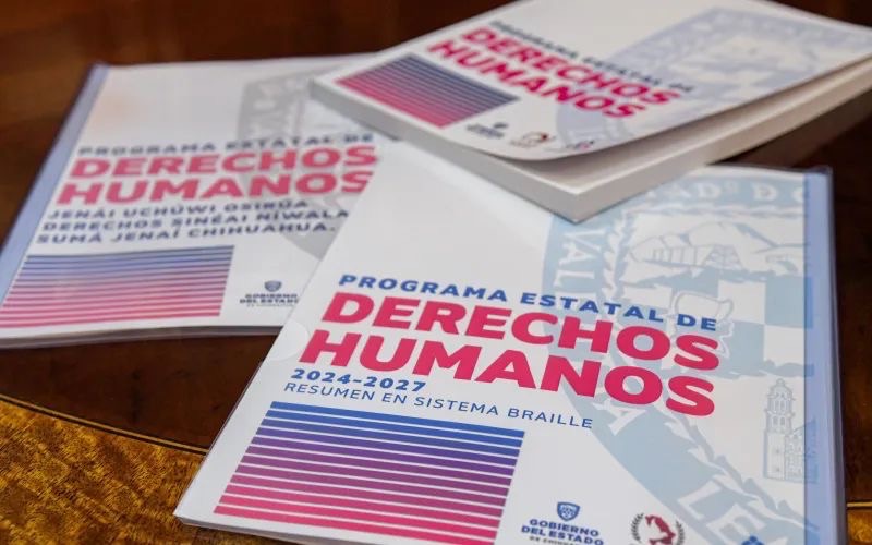 La gobernadora Maru Campos presentó los primeros ejemplares del Programa Estatal de Derechos Humanos 2024-2027 en formatos accesibles: sistema braille y lengua rarámuri, con el objetivo de promover la inclusión, la diversidad cultural y la accesibilidad en el estado.