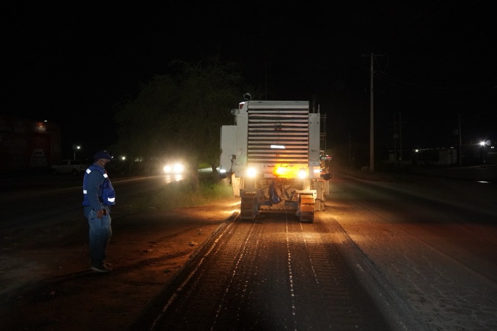 Estas labores se suman a los trabajos recientes de reposición asfáltica en el tramo de la Puerta de Chihuahua al entronque del CERESO, donde se mejoraron 3 mil 646 metros cuadrados.