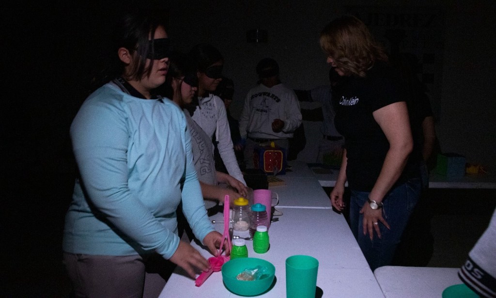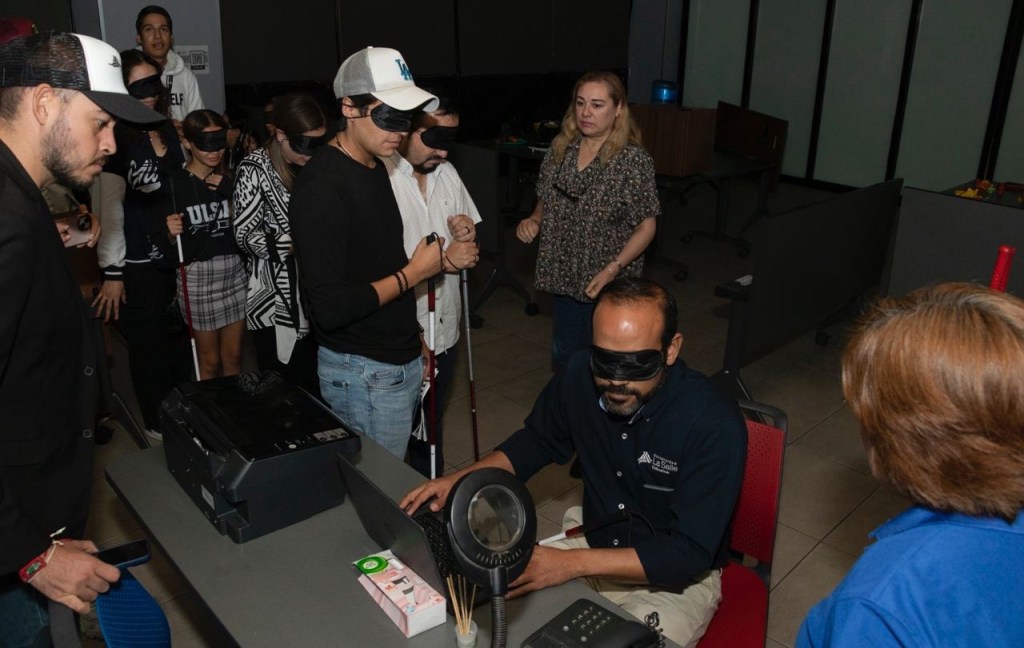 Esta dinámica busca generar empatía, reflexionar sobre la inclusión y reconocer los retos diarios que enfrentan las personas con discapacidad visual.