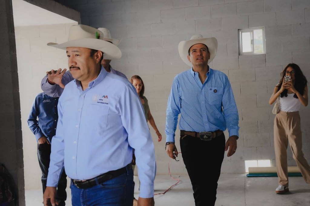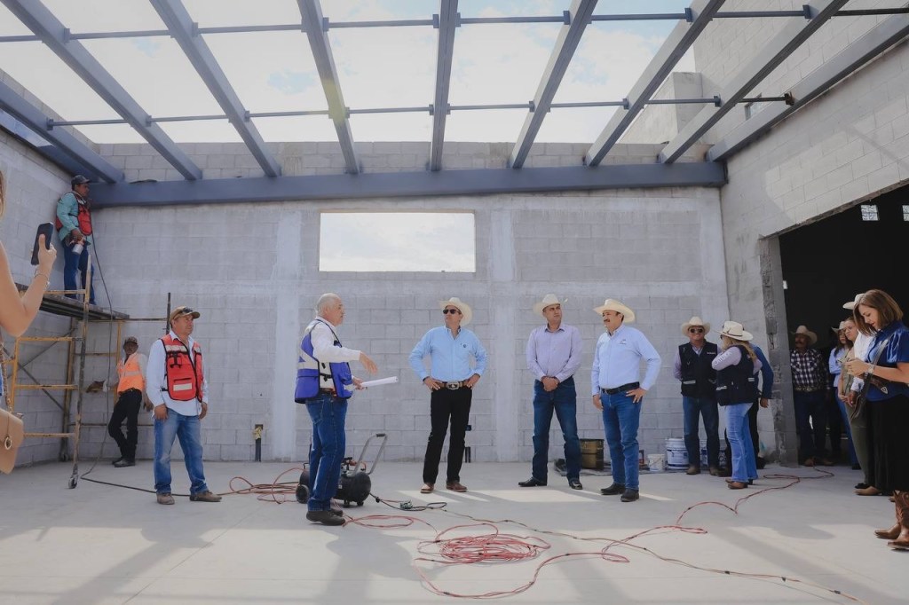 El Charco, Chih., a 24 de septiembre de 2025.- El alcalde Marco Bonilla supervisó los avances de la ampliación del salón de usos múltiples en la comunidad El Vallecillo, obra que registra un 70% de progreso y que incrementará la capacidad de 300 a 450 personas.