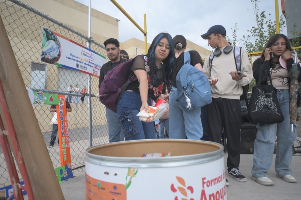 La actividad reunió a cerca de 2,500 estudiantes, docentes y personal universitario, quienes disfrutaron de una comida gratuita elaborada con productos proporcionados por el Banco de Alimentos de Cáritas. A cambio, los asistentes realizaron la donación de arroz o frijol, en apoyo a la campaña “Chihuahua Comparte” destinada a comunidades de la Sierra Tarahumara.