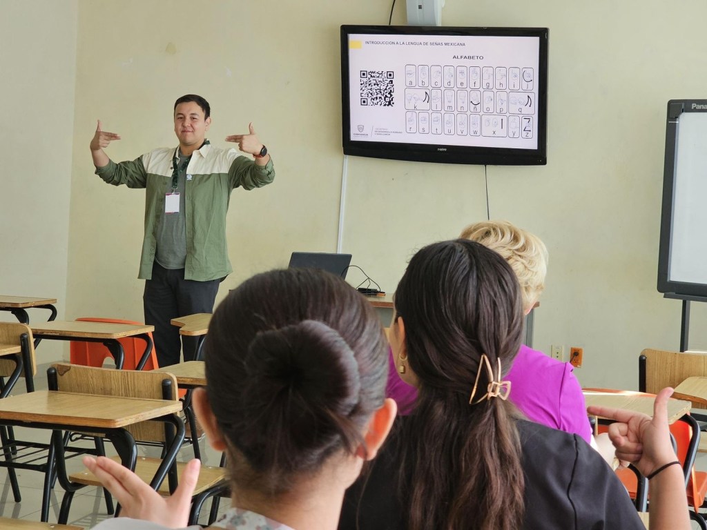 Asimismo, la Dirección de Grupos Vulnerables promueve talleres de Lengua de Señas Mexicana (LSM) dirigidos a servidores públicos, empresas y academias, con el propósito de fomentar la empatía y facilitar la comunicación con personas sordas.