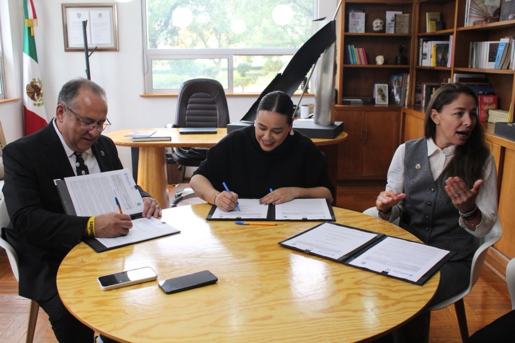 La firma estuvo encabezada por la secretaria de Cultura, Alejandra Enríquez Gutiérrez; el rector de la UACH, Luis Rivera Campos; y la directora de Extensión y Difusión, Ruth Grajeda.
