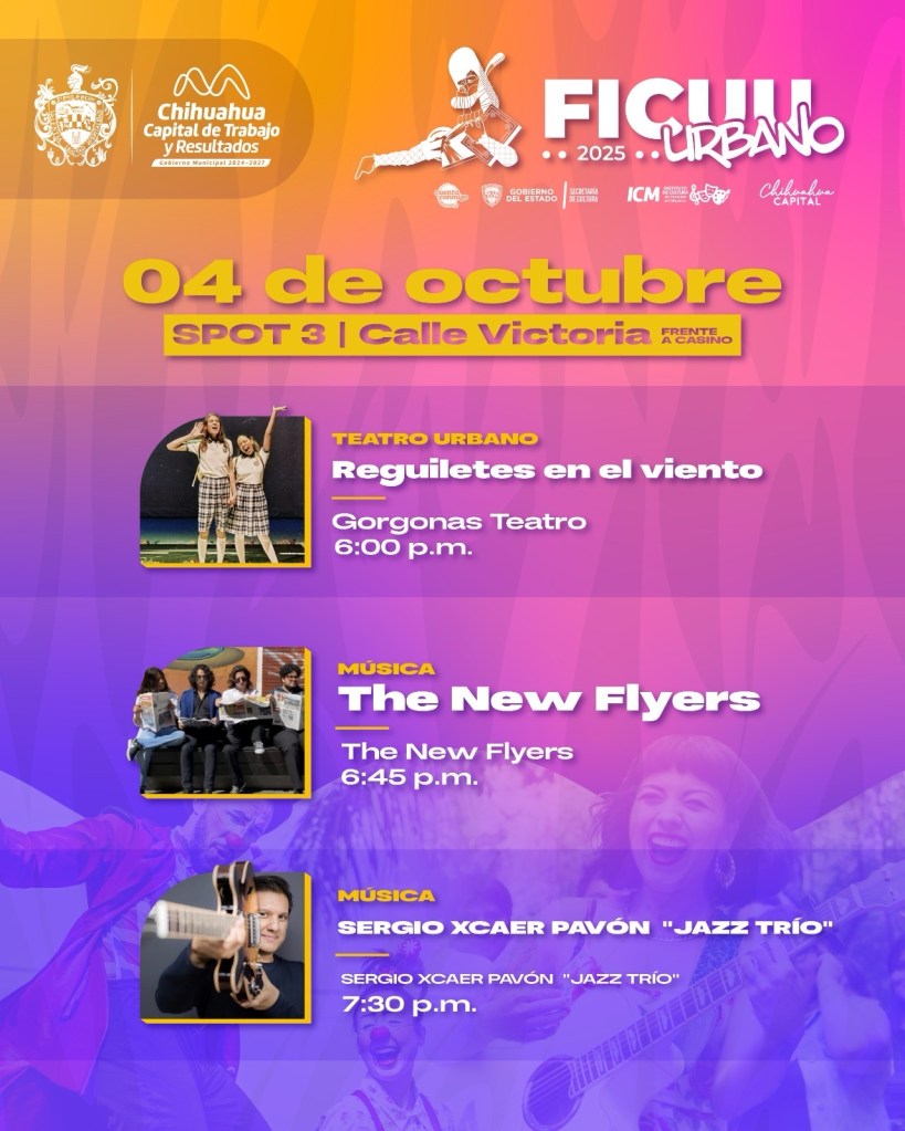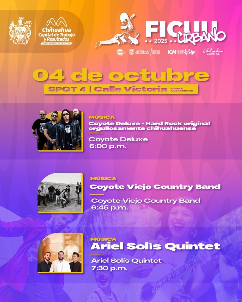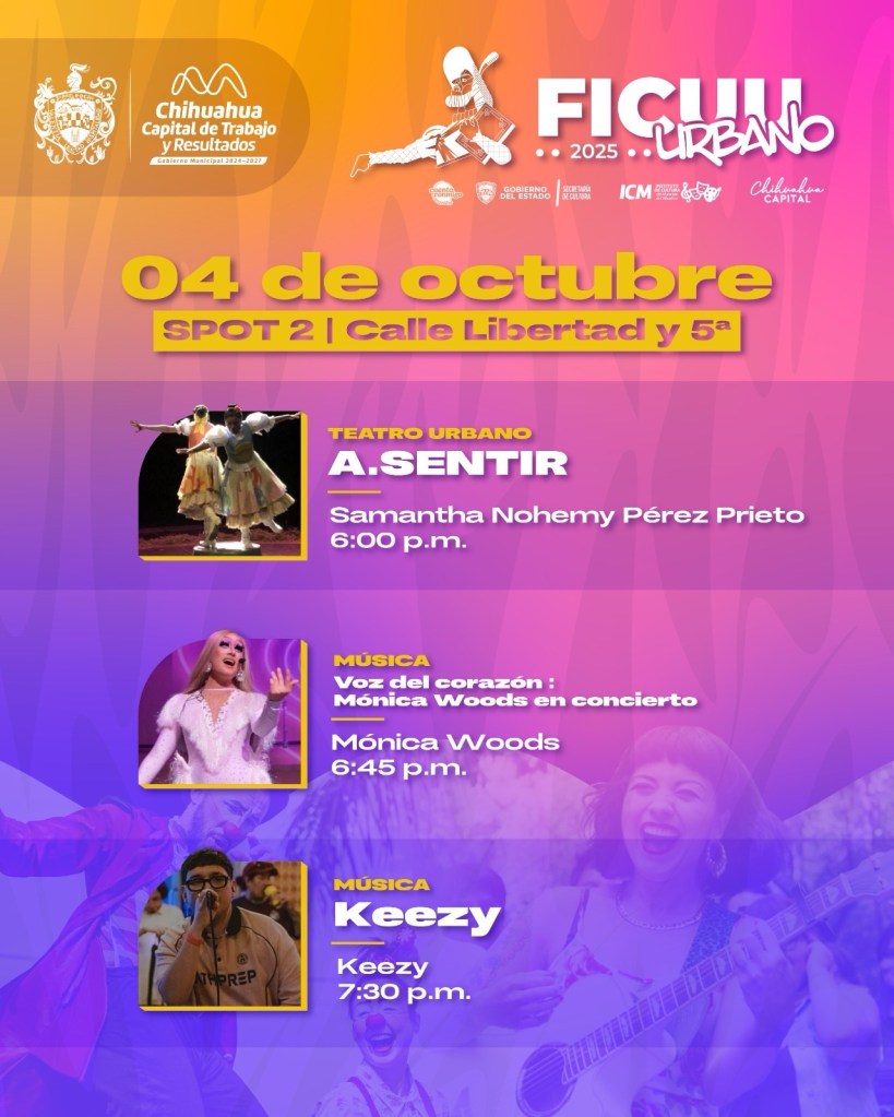El Gobierno Municipal, a través del Instituto de Cultura del Municipio (ICM), presentó la cartelera oficial de FICUU Urbano, el evento que abrirá el telón del Festival Internacional de la Ciudad de Chihuahua (FICUU 2025).