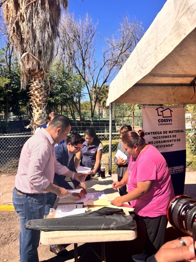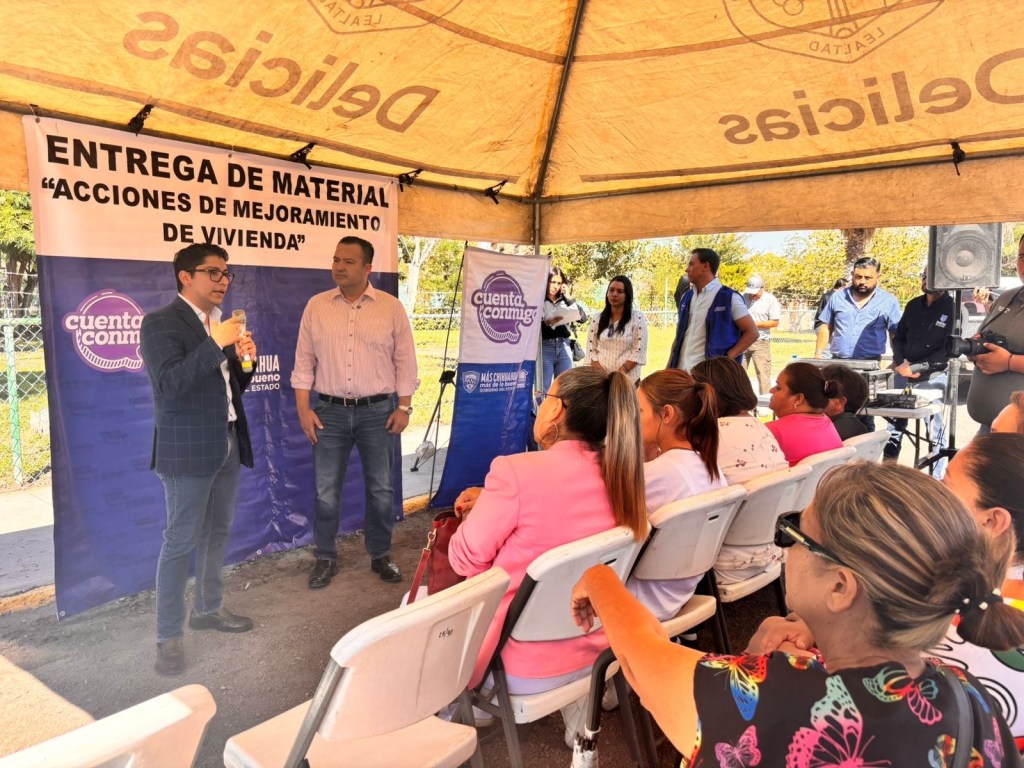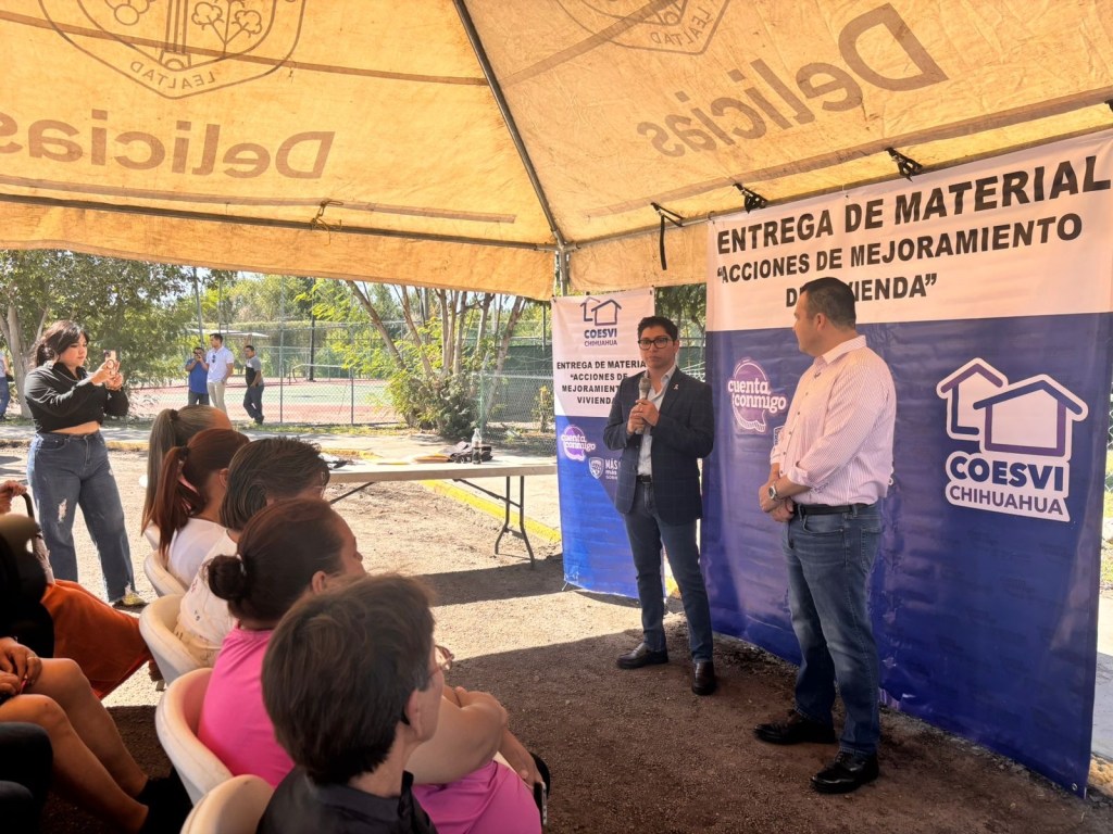 La entrega fue encabezada por el director de Atención y Programas Sociales de Coesvi, Jesús Ricardo Huerta Ayala, y el alcalde de Delicias, Jesús Valenciano García, quienes reiteraron el compromiso de trabajar de manera conjunta en favor de los hogares del municipio.
