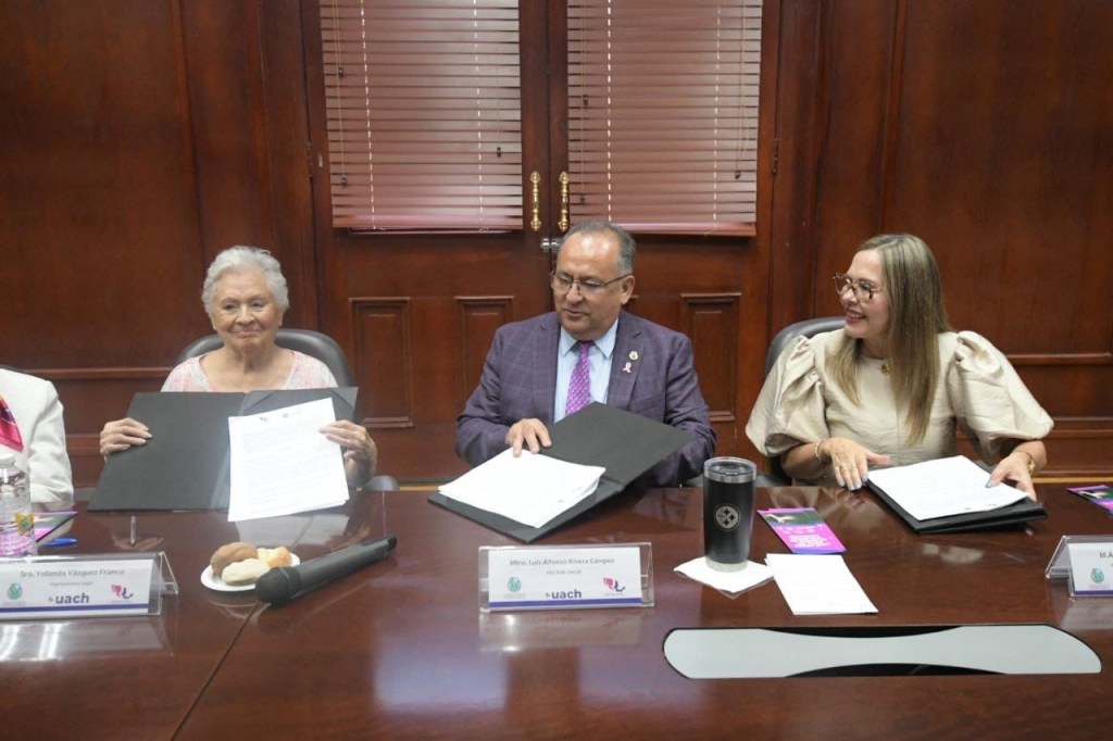 Finalmente, Yolanda Vázquez Franco, representante de Mujeres por México en Chihuahua A.C., agradeció el compromiso de la Máxima Casa de Estudios y subrayó que esta colaboración representa un paso importante en beneficio de toda la sociedad.