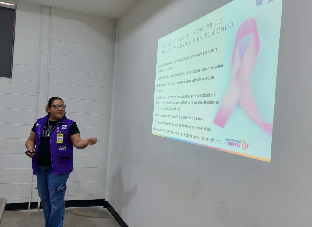 En el marco del Mes de Sensibilización sobre el Cáncer de Mama, el Gobierno Municipal de Chihuahua, a través del Instituto Municipal de las Mujeres (IMM), lleva pláticas informativas y de concientización a diversas empresas de la capital, con el objetivo de promover la detección oportuna y el autocuidado entre las trabajadoras.
