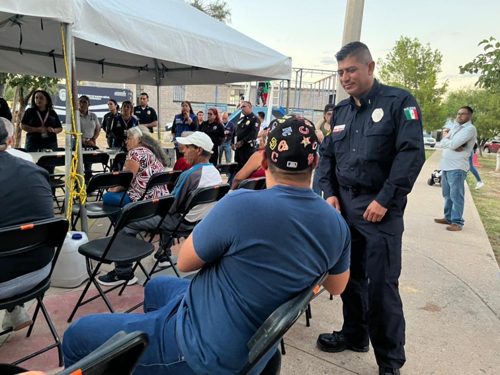 Durante la reunión vecinal, las y los agentes recordaron las herramientas disponibles para mantener una comunicación directa con la Policía Municipal, como la línea 9-1-1, Red Vecinal, Marca el Cambio y la aplicación Yo Segura.