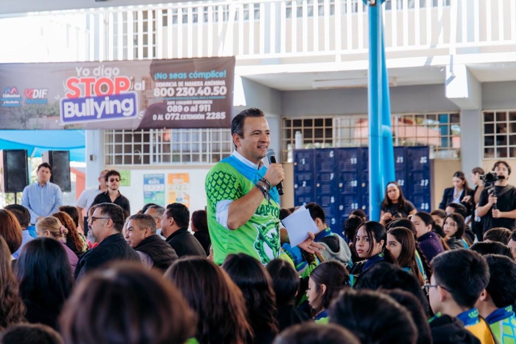 El alcalde Marco Bonilla dio inicio a una nueva edición del programa “Conecta Contigo, Programa de Prevención de Riesgos en la Adolescencia”, en la Secundaria Federal No. 13, con el objetivo de promover el bienestar integral de los jóvenes y prevenir riesgos como embarazos adolescentes, adicciones, suicidio, malnutrición y problemas cardiovasculares derivados del sobrepeso y la obesidad.