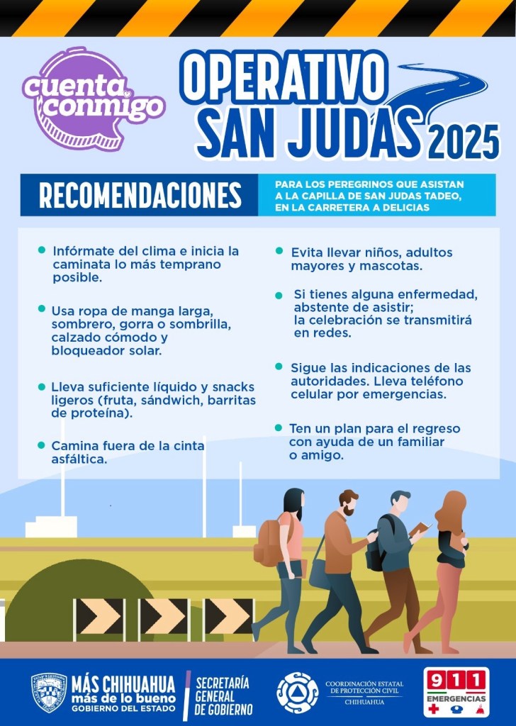 Como parte de la tradición, los devotos recorren cerca de 15 kilómetros sobre la carretera Chihuahua–Delicias, tramo en el que se desplegará personal de distintas dependencias para brindar atención médica, vigilancia vial y apoyo preventivo continuo.