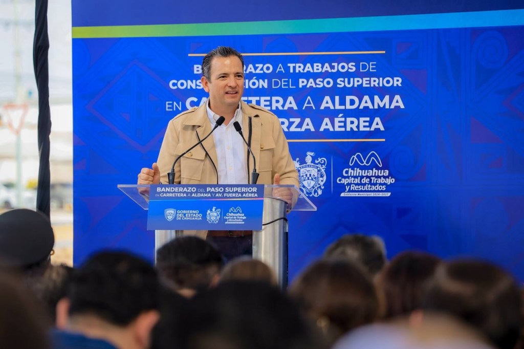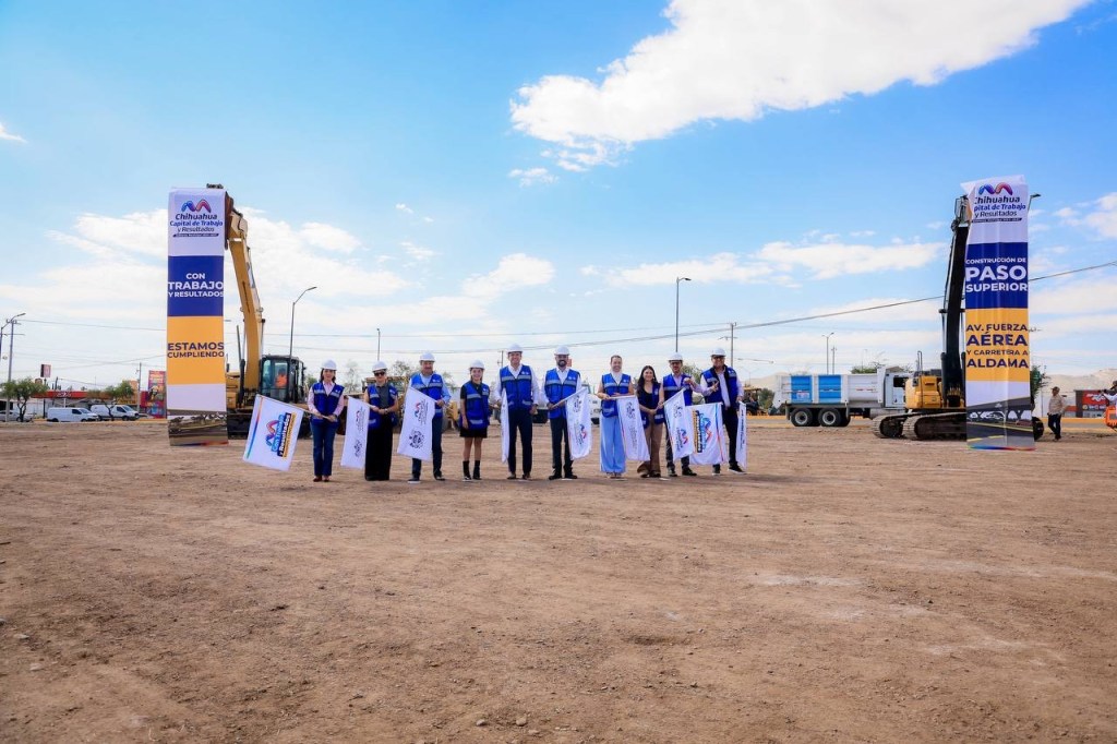 El alcalde Marco Bonilla dio el banderazo oficial de arranque a la construcción del paso superior vehicular ubicado en la intersección de la carretera Chihuahua–Aldama y la avenida Fuerza Aérea, una de las obras emblemáticas de su administración, que busca mejorar la movilidad y la conectividad en la zona oriente y de acceso al aeropuerto de la ciudad.