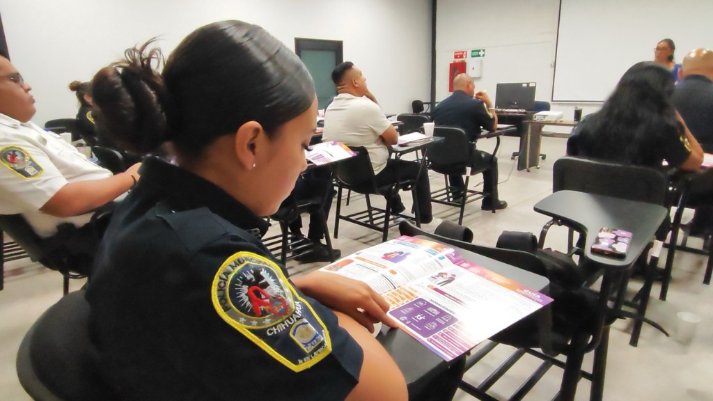 Personal experto en atención a víctimas capacita constantemente a los policías que integran esta unidad, fortaleciendo sus habilidades para intervenir con sensibilidad y perspectiva de género en situaciones de riesgo.